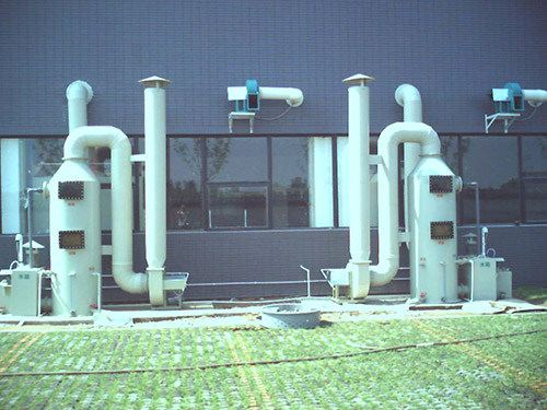 設備本身包含本體、填充層、除霧層、循環灑水槽等,設廢氣入口、出口、洗滌液入口、溢流口、排水口、填充料、循環水泵浦、循環水過濾網、循環水管路、灑水噴嘴、視窗、維修入孔及洗滌塔內部用以支撐及固定之結構;塔身材質為PP、PVC等,確保設備本身的耐腐蝕性以增加其使用壽命。使用對象:各種制造業廢氣及各類實驗室廢氣之液態微粒、固體微粒物、重金屬有害物、有機溶劑、臭氣及水溶性空氣污染物之處理等。